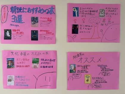 日が暮れるのも早くなりました。秋の夜長は読書に親しみましょう。学校では朝の読書をしています。おすすめの本など、図書館も覗いてみましょう。また今日は暦のうえでは「立冬」です。朝夕は冷えてきました。風邪にも注意。