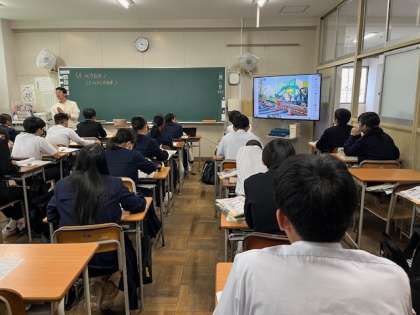 3年生「社会科」の授業です。地方自治について学習しています。地方公共団体にはどんなものがあり、どんなしごとがあるのでしょうか。また、地方自治が「民主主義の学校」と言われるわけはなぜでしょうか。考えながら学習を進めています。