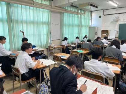 1年生「道徳」の授業です。生命の尊さについて考えました。マザーテレサの話です。「人間にとって最も悲しむべきことは、自分はこの世で不要な人間だと思い込むことだ。また、現世の最大の悪は、そういう人に対する愛が足りないことだ。」大切な命について考えたことをまとめました。