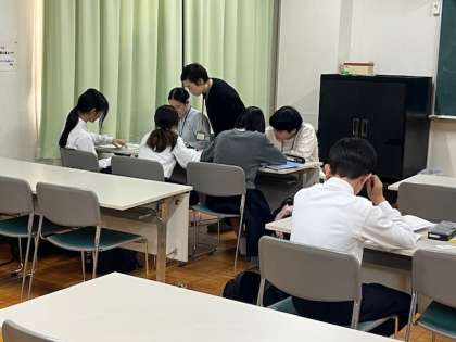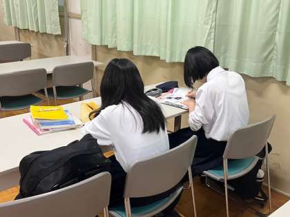 放課後の学習会です。3年生が進路懇談ですので1・2年生の参加です。説明してほしいところなど、学習ボランティアの人に聞きながら進めています。集中して取り組んでいます。