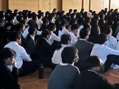 劇団芸優座による「一休さん」の上演です。演劇の体験として、本校の生徒も「村の子ども」役で出演しました。台詞(せりふ)もあり、名演技を披露してくれました。また、全員で「お掃除の唄」を歌うなど、参加型の楽しい演劇の鑑賞でした。
