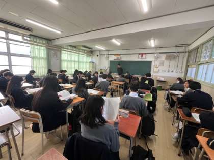 始業式の後の学級活動です。通知表を渡しました。周りの人の成績も気になります。自分なりに2学期を振り返り、3学期につなげていきましょう。