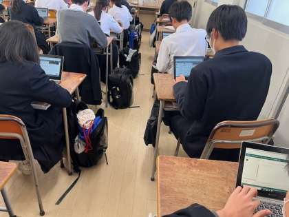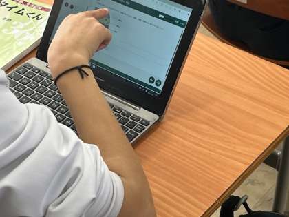 2年生は、来年度3年生になったときに行われる全国学力・学習状況調査理科のサンプル問題の事前検証を実施しました。来年度の全国学力テスト理科は、タブレットパソコンを使ってのCBT(コンピューターを使用したテスト)になります。タブレットパソコンの画面を見ながら解答していきます。選択肢から選ぶものや文字・文章の入力して解答するものもあります。また動画(音なし)を見て解答する問題もあります。これからはパソコンを使ってのテストも増えていく見込みです。キーボードを使っての文字の入力を練習しておきましょう。