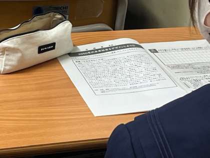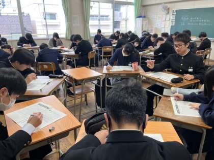 3年生「総合的読解力」の時間の様子です。情報を正確に読み取る練習が必要です。文字だけでなくグラフや表も含めて読み取る力をつけています。