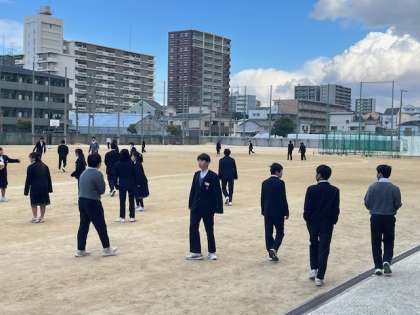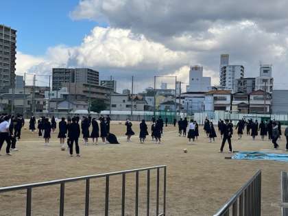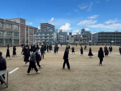 ときおり雪が降る🥶寒い天気ですが、生徒たちは元気です。昼休み「寒い〜」と言いながらも多くの生徒が学級ボールを使って、活動しています。