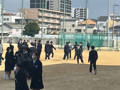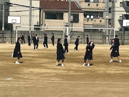 日なたは温かいですが、日陰は冷えてきました。今週は気温が下がりそうです。生徒たちは元気にボールを使って活動しています。3年生は懇談会があり、昼から下校しますので運動場は1・2年生だけです。