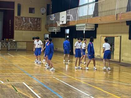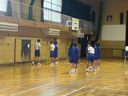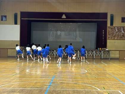 2年生「体育」の授業です。創作ダンスに取り組んでいます。タブレットパソコンで動画を撮り、振り付けを確認しながら進めています。
