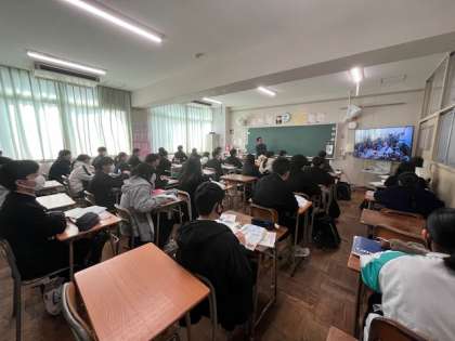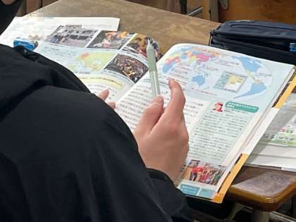 3年生「社会科」の授業です。国際貢献について学習しています。貧困や環境破壊などの解決、教育支援など自発的に活動している団体もあります。このような民間団体を何というのでしょうか。