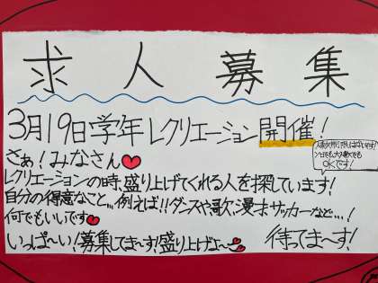 1年生学年レク出演者募集 3/6