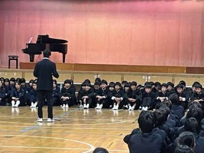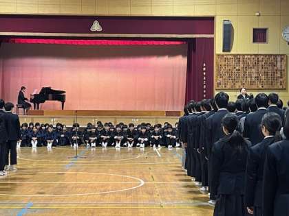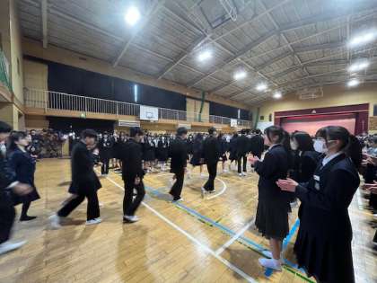 卒業式には在校生が全員出席できませんので、本日卒業生を送る会を行いました。在校生からは「お祝いの言葉」在校生合唱「ふるさと」、コサージュの贈呈を行いました。卒業生からは「お別れの言葉」「正解」の合唱がありました。在校生にバトンが渡されます。