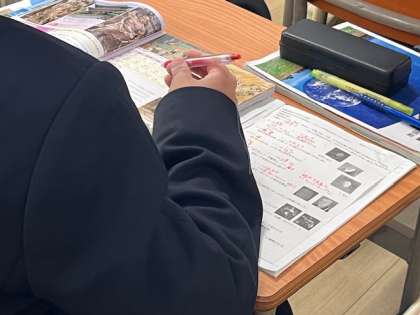 1年生「社会科」の授業です。鎌倉時代に新たに広まった日本の仏教について学習しています。その後室町時代、臨済宗の僧が一休さんです。12月に学校で観た芸出鑑賞の主人公です。