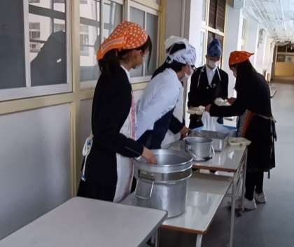 今日のメニューは豚肉のしょうが焼き、とうふのみそ汁、じゃこピーマンです。