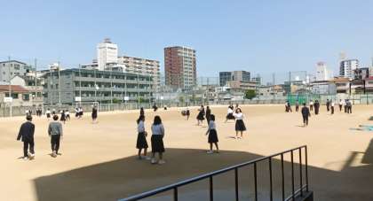 昼休みは運動場で、たくさんの生徒が遊んでいます。