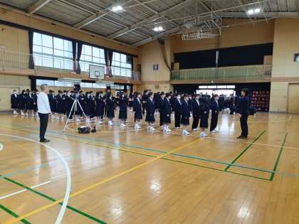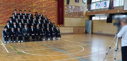 1時間目、1年生から順番に学級写真を撮影しています。