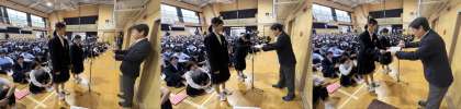 バドミントンの大会で、3年生2名が表彰状を受け取りました。