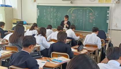 1時間目、1年4組は国語です。