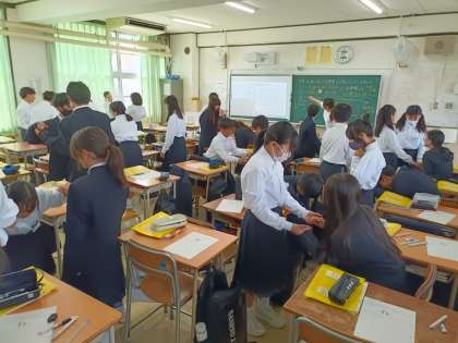 1時間目、1年3組は家庭科です。
