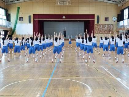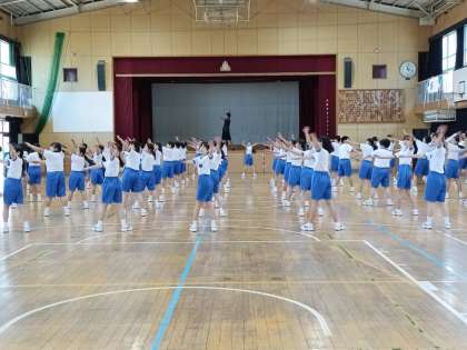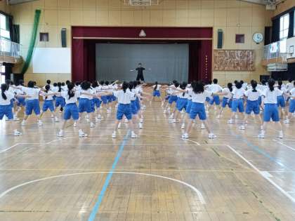 3時間目、1年3,4組は、体育で「ラジオ体操」です。