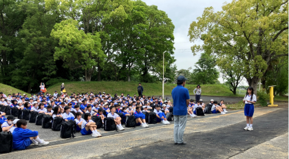 さきほど、1年生は自然豊かな信太山青少年野外活動センターへ到着しました。