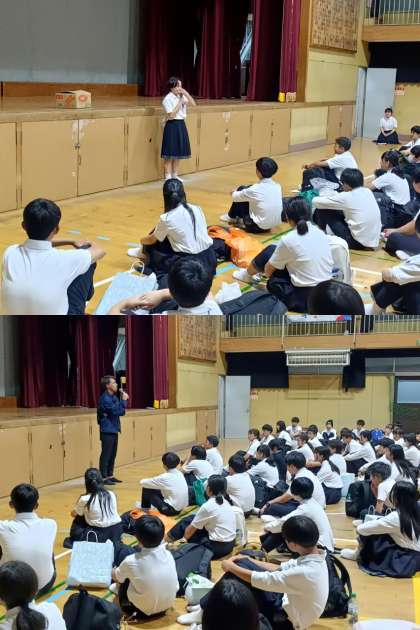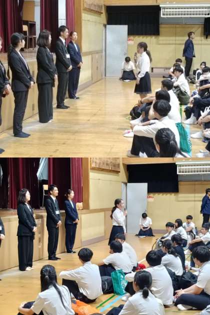 代表から、添乗員の皆さんとカメラマンの方へのお礼の言葉の後、代表から修学旅行のまとめがありました。