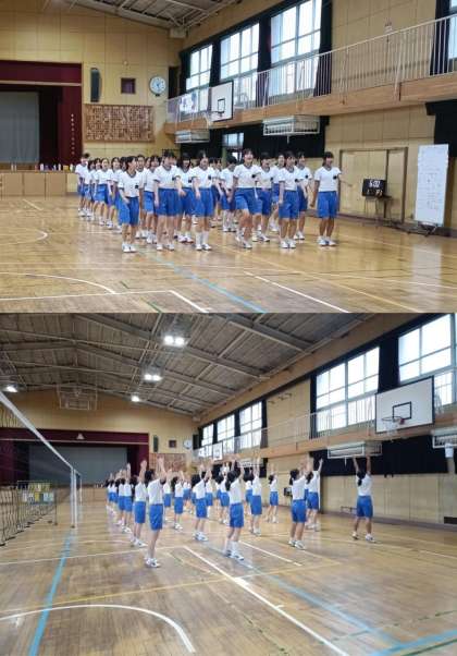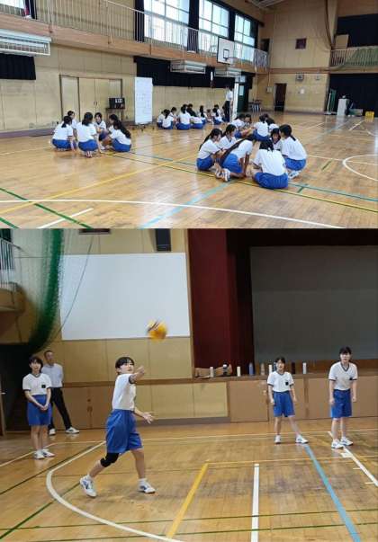 5時間目、2年1,2組は体育で、実習生の研究授業です。