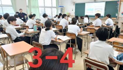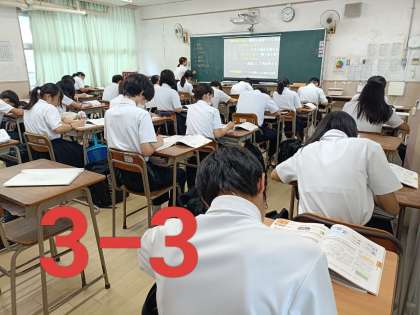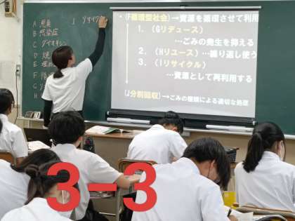 2時間目、3年3,4組は保健です。4組は実習生が授業をしています。「生活に伴う廃棄物の衛生的管理」について学習しています。