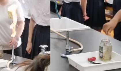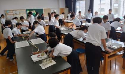 理科室でガスバーナーの使い方を学習しています。