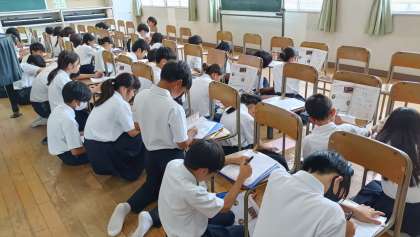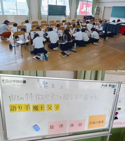 今日のめあては「曲の特徴や良さを紹介文で表せる」です。