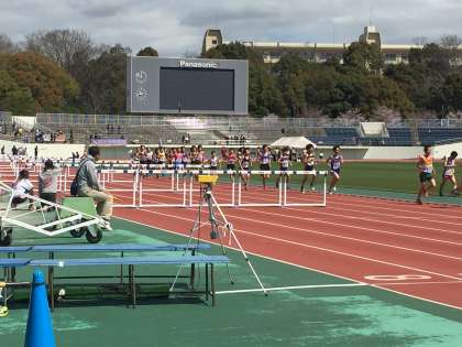 4月2日(土)、万博記念公園陸上競技場にて大阪陸協第1回記録会が開催されました。今シーズン、最初の試合です。公園の周りでは桜が満開でした。