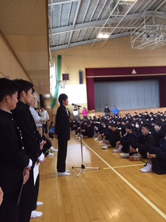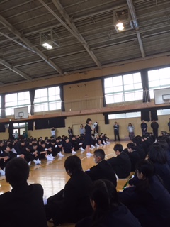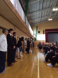 4月8日(金)平成28年度第1学期始業式を体育館で行いました。初めに新転任の教職員の着任式を行いました。校長を含めて9名の教職員が三稜中学校を去られ、8名の教職員が着任しました。始業式の中で生徒会の認証式、その後、1年生と2・3年生の対面式を行いました。新しい1年が始まりました。
