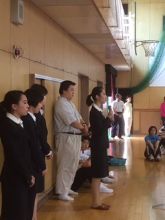 5月31日(火)昨日は3年生が修学旅行の代休だったので、本日全校集会を行いました。今日から3週間、4人の卒業生が教育実習を行います。全校集会で一人ずつ紹介して挨拶をしていただきました。