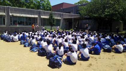 退所式を終えて、学校に向かいます。学校には予定通り3時過ぎに到着します。