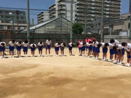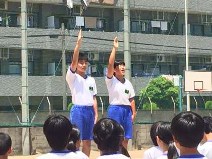 晴天の中、開会式、ルールの説明、選手宣誓、体操、審判などの各役割を生徒達の手で行いました。生徒達は一生懸命に競技に取り組んでいましたが、応援もしっかりでき、クラスの絆も深まったと思います。