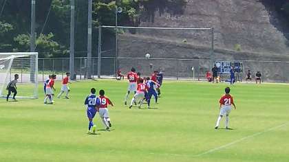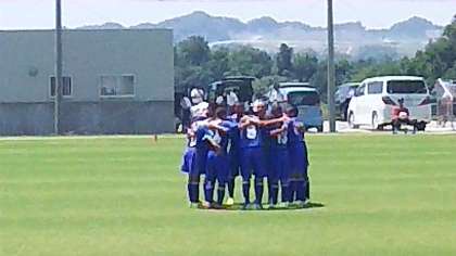 8月9日(火)サッカー部、近畿大会二日目決勝トーナメント準決勝で、兵庫県代表の東谷中学校と対戦です。互いに譲らず0ー0で前半終了です。