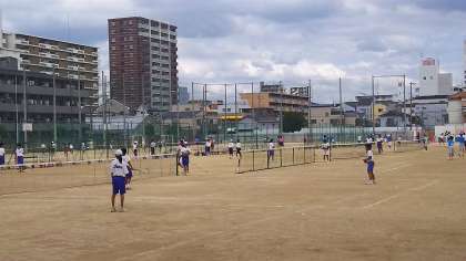 8月23日(火)ソフトテニス部が運動場全面を使って、練習試合を行いました。8月27日(土)、28日(日)新北島中学校で7B大会が開催されます。秋季総体に出場するメンバー以外の3年生にとって引退試合となります。応援よろしくおねがします。