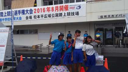 第43回全日本中学校陸上競技選手権大会女子砲丸投げで、みごと全国優勝を果たしました。8月5日(金)夏休みの平和登校日、住吉区民センターで本人が全校生徒の前で宣言した通りの結果を出しました。