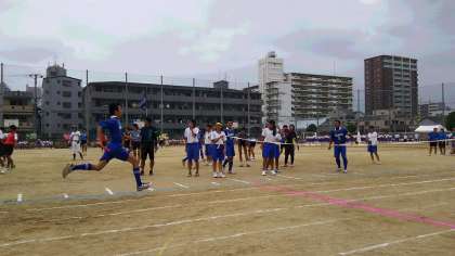 クラブ対抗リレー、男子運動部は1位サッカー部、2位陸上部、3位ソフトテニス部、4位野球部、5位バスケットボール部でした。