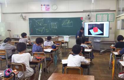 9月29日(木)中間テストの午後、校区の南住吉小学校・大空小学校の6年生児童に授業体験を実施しました。社会は「世界の国々について、都道府県について」数学は「立体の切り口」の授業でした。