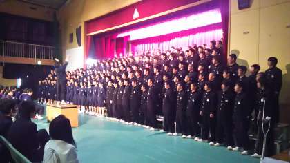 舞台発表の第2部では、1年生が代表クラスの4組が自由曲の「TOMORROW」を、1年生全体で課題曲の「あすという日が」を混成3部で全体合唱しました。
