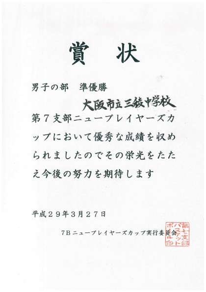 3月27日(月)男子バスケットボール部が、7ブロックの1年生大会に出場し準決勝で大領中学校に35−30で勝利しました。決勝戦では我孫子中学校に24−74で敗れましたが見事準優勝しました。今日は、春の大会に向けて体育館で練習に励んでいました。