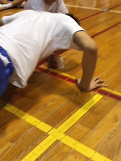 室内レクレーション最後の種目は燃えるぜ俺の大胸筋バーニング腕立てリレーです。