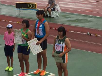 前日の台風5号の影響でプログラムが変更され、3投しかないという悪条件にもかかわらず3投目で大会新記録となる15m86を投げました。大阪の大会から不調続きで、台風の影響もあり心配しましたが、本番で結果を出すのはさすがです。22日(火)に熊本県で開催される全国大会でも二連覇を達成してくれそうです。応援していただいた皆さまに感謝申しあげるとともに、引き続き応援よろしくお願いします。