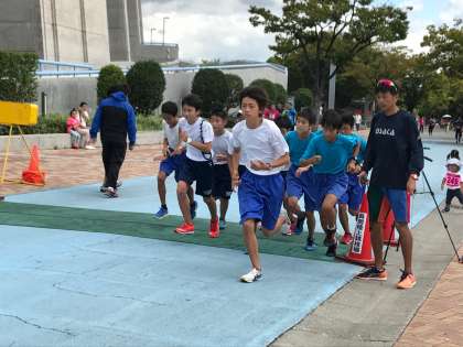 9月18日(月)長居競技場内周回道路にて大和川中学校と駅伝予選会に向けて合同練習会をしました。台風一過の好天にも恵まれ、大和川中学校の顧問(中体連強化部中長距離コーチ)のもと、男子は4kmのペース走と1000m×3本のタイムトライアル、女子は3kmのペース走と1000m×2本のタイムトライアルという練習内容でした。これで3回目の練習とあって1年生もだんだん練習に慣れ、タイムも上がってきました。