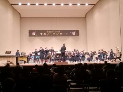 3月11日(日)住吉区役所主催のすみよしコンサートが住吉区民センター大ホールで開催されました。第2部の最初に区内の中学校7校と小学校校2校よる合同演奏が行われました。東日本大震災からの復興を応援するために、「上を向いて歩こう」と「花は咲く」の2曲を総勢230名で演奏し、合唱しました。三稜中学校は単独演奏で「ある英雄の記憶〜虹の国と氷の国より」と「ジャパニーズ・グラフティXV〜アニメヒロイン・メドレー」の2曲を演奏しました。大勢の保護者・地域の皆さまの前で演奏の機会を与えていただきありがとうございました。住吉区役所並びに関係の皆さまに感謝申しあげます。