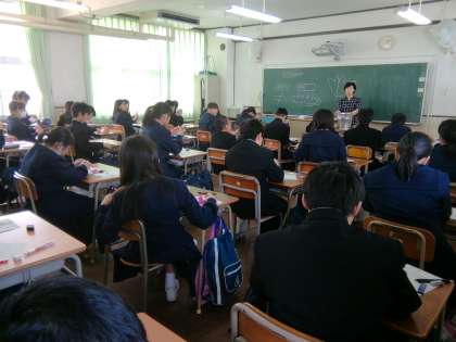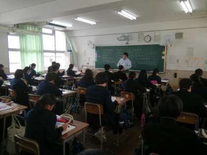 上の写真は3年生の数学、下の写真は1年生の理科の授業の様子です。