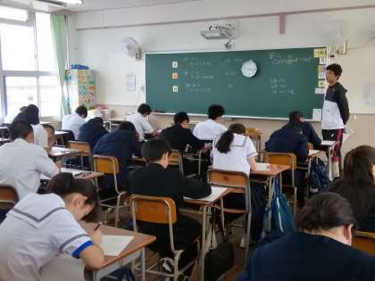 5月14日(月)中間テスト1日目です。気温が高くなってきて夏服のの人が多くなってきました。爽やかな風が吹く教室で、生徒たちはテスト問題に真剣に取り組んでいました。明日のテストが終われば、午後から部活動が再開され、3年生は修学旅行、1年生は一泊移住、2年生は職場体験の準備で忙しくなります。