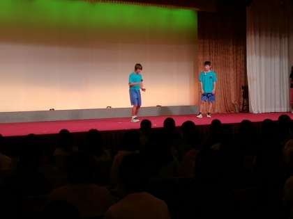 3年1組男子のダンスに大爆笑の後は、けん玉の妙技に感嘆の声と大きな拍手でした。