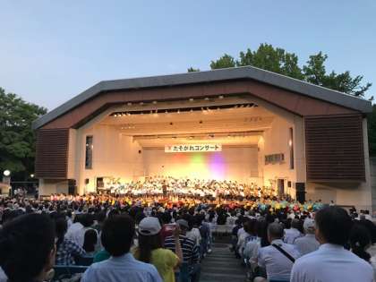 8月17日(金)大阪城野外音楽堂で開催された「たそがれコンサート」に、三稜中学校吹奏楽部が住吉区内中学校吹奏楽部の合同バンドで出演し爽やかな演奏を披露しました。演奏曲は、「ゲバゲバ90分」、「lemon」、「昭和歌謡コレクション」、「Disco ‘70s (ディスコ・セブンティーズ)」の4曲です。最後に3年生がOsaka Shion Wind Orchestra(大阪市音楽団)と一緒に「風になりたい」を演奏させていただきました。大勢の保護者の皆さまにお越しいただきありがとうございました