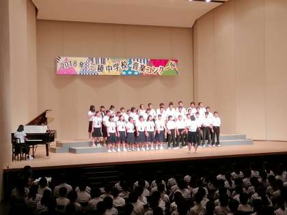 第2部は2年生の自由曲の発表です。各クラスの自由曲は発表順に、3組「友よ」(写真上)、2組「春の歌」(写真中)、4組「あとひとつ」(写真下)、