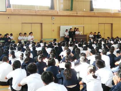 10月15日(月)6限、体育館で生徒会立会演説会を行いました。立候補者と候補者の応援演説はどれも力強く頼もしく感じられました。生徒会役員は3年生から2年生へと引き継がれます。この後、来週には各学級委員・係が選出され後期の活動がスタートします。